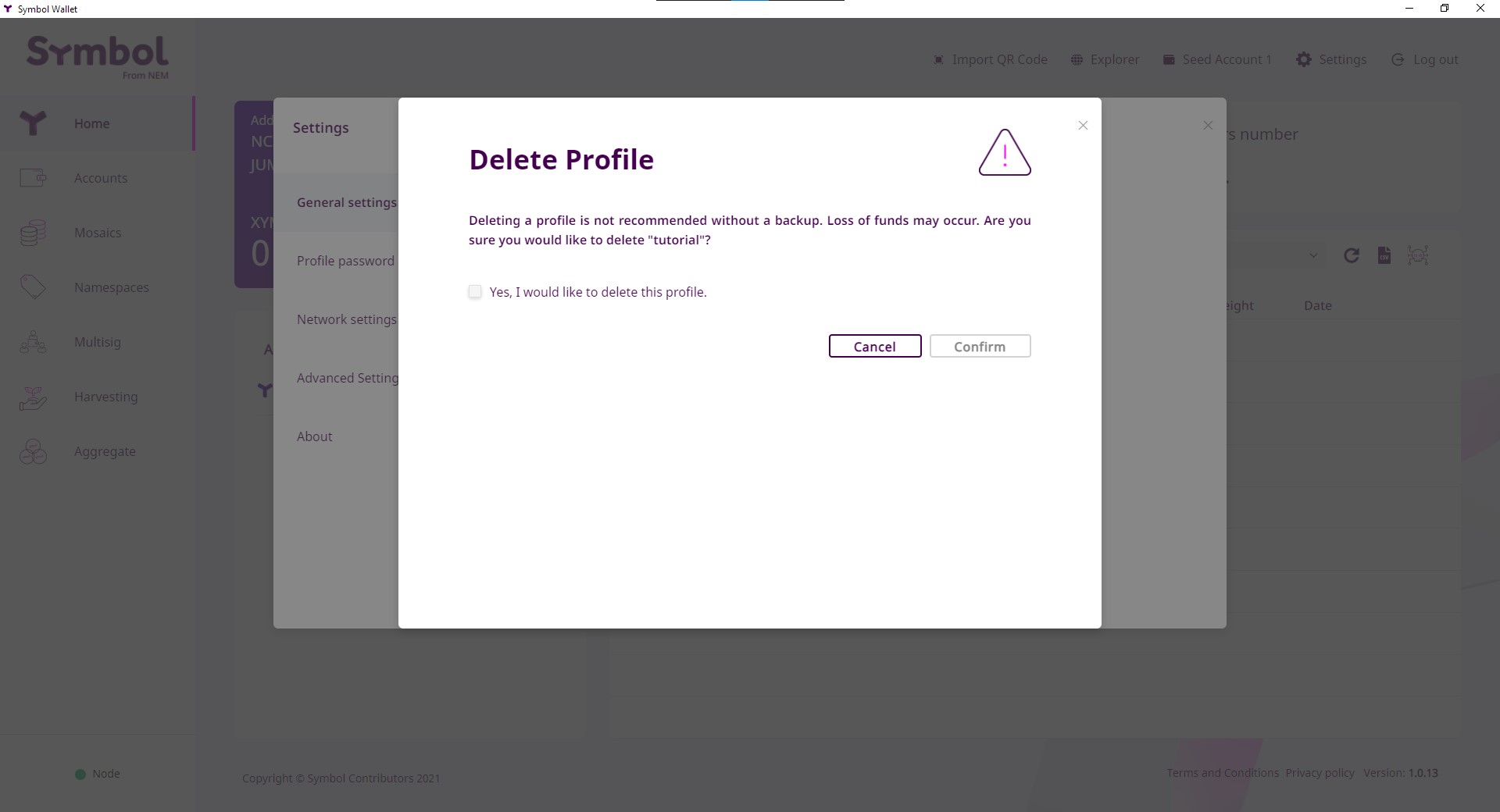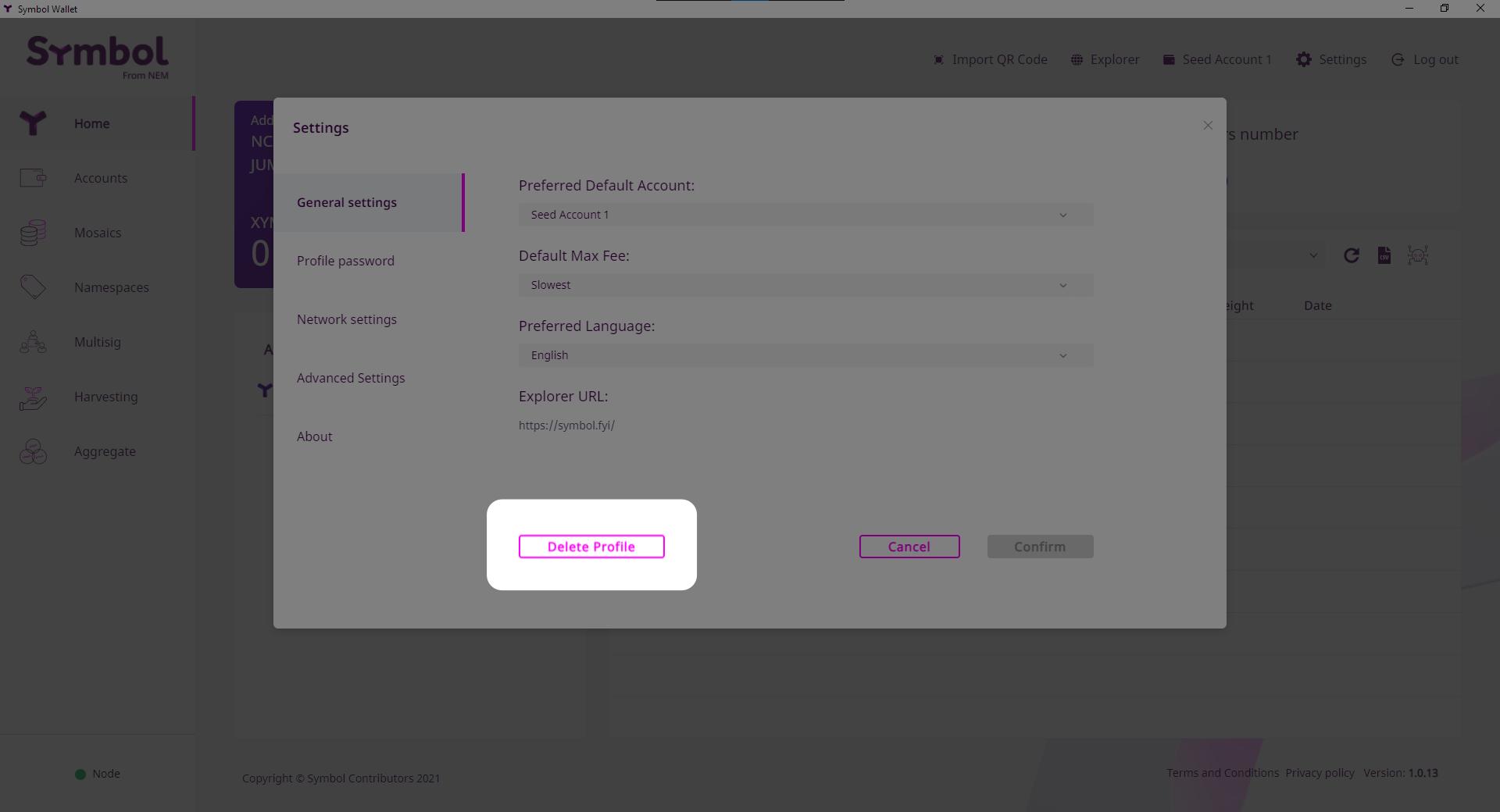 This page explains how to permanently delete a profile from the Symbol Desktop Wallet.