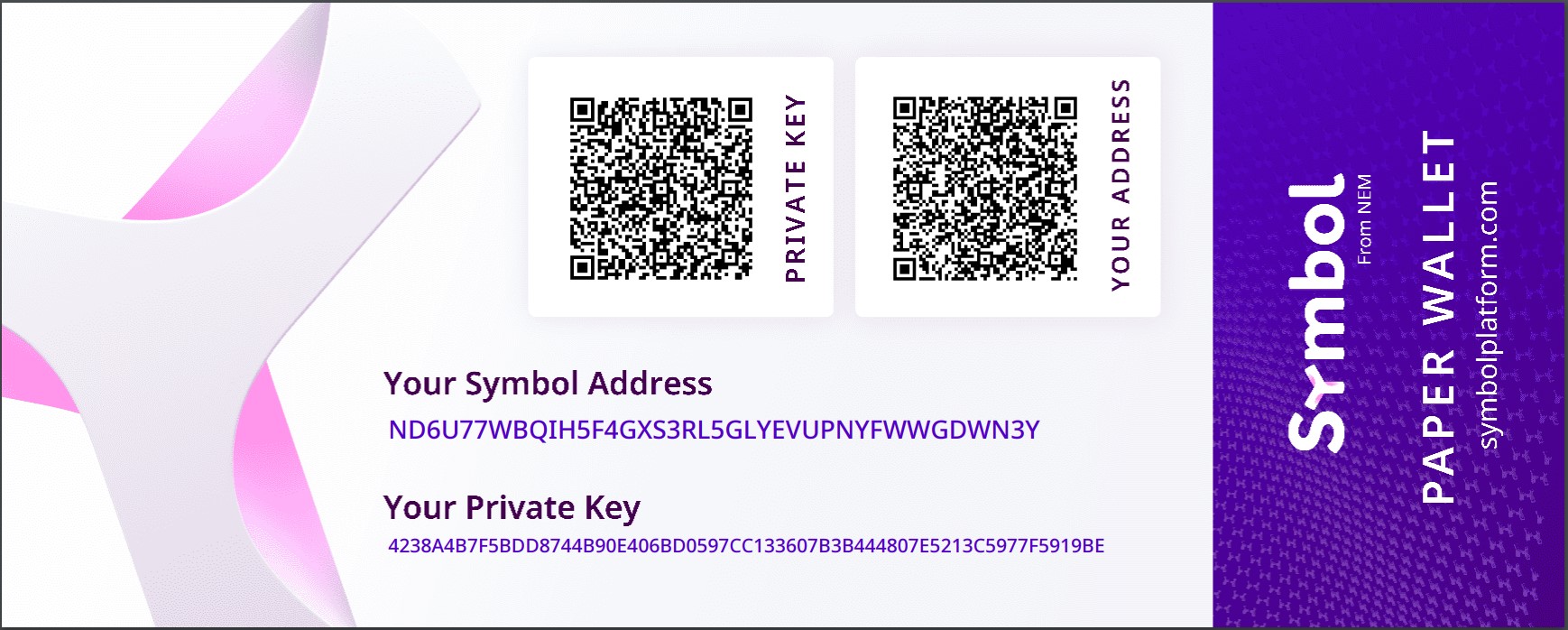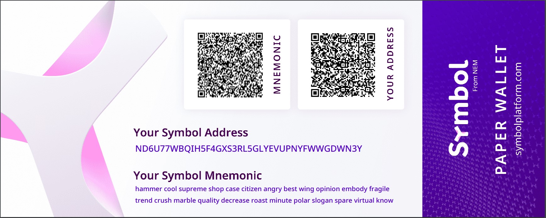 The Symbol Desktop Wallet exports profiles as paper wallets:
